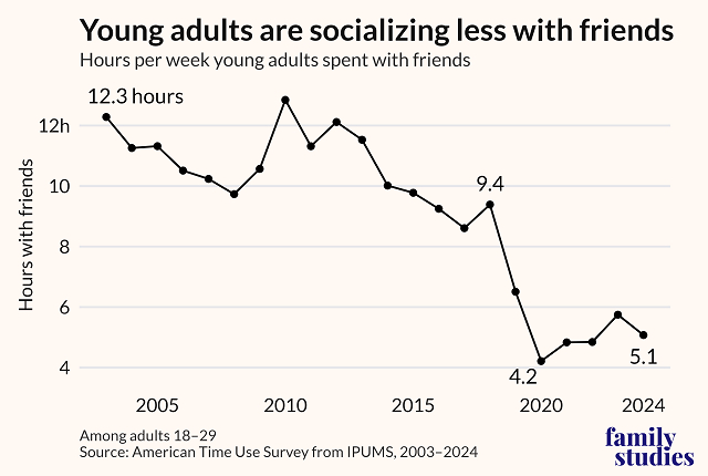 Также молодые американцы стали гораздо меньше общаться между собой: в 2000-х годах среднее время общения с друзьями составляло около 11 часов в неделю, а теперь в два раза меньше - 5 часов.