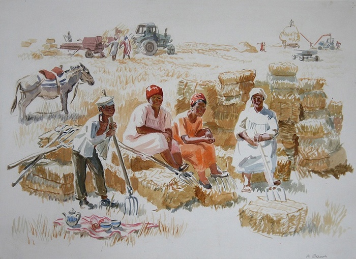 Нравятся мне очень Советские картины изображающие рабочего, сколько уважения и гордости в них за трудящегося человек, за человека созидающего, приносящего пользу и себе и обществу! Как гордо, сильно и смело выглядит на них рабочий человек! Пряма спина, спокойствие, самоуважение и улыбка на лице. Какие светлые приятные лица :)
