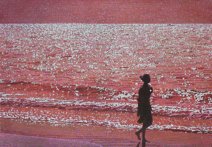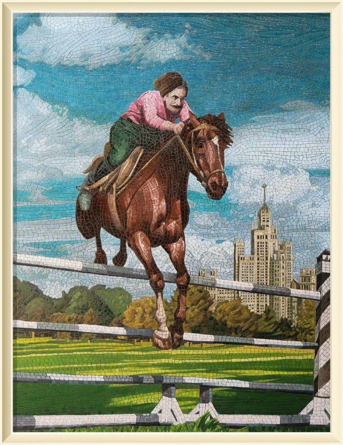 Двадцать лет назад художник Анатолий Ганкевич придумал особый стиль письма — имитация мозаики. Сложная игра фактуры работ и тематических смыслов – характерная особенность творчества художника.