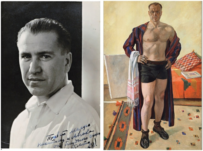 Фото, 1935 год; Автопортрет, 1948 г. Холст, масло. 175,2×110