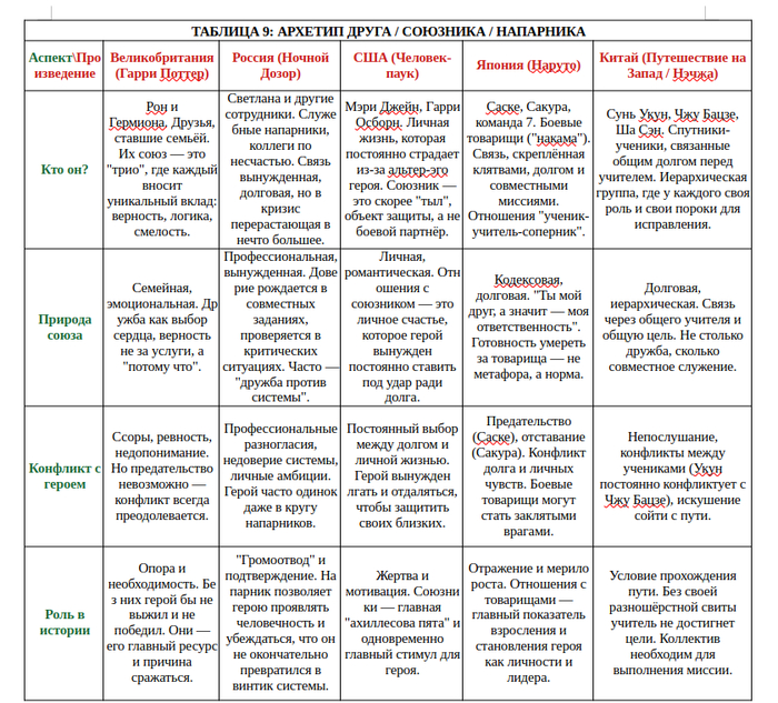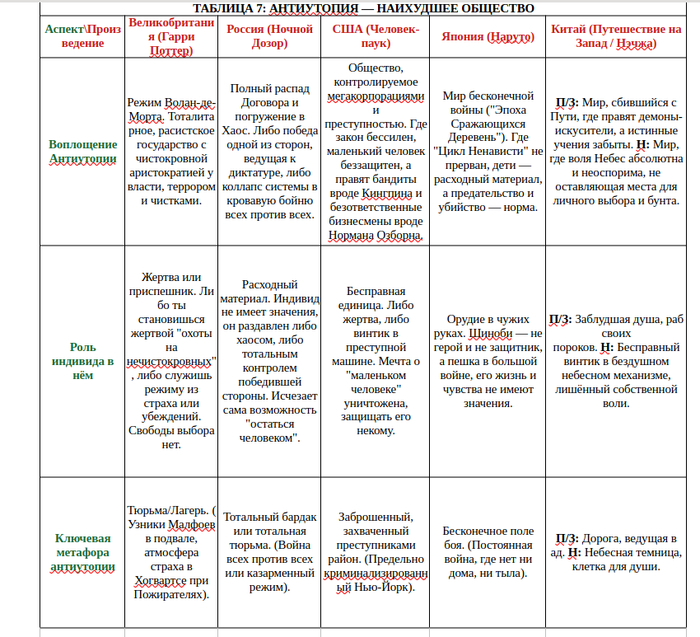 Не о добре и зле: Текст и таблицы не являются моральной или политической оценкой. Упомянутые «злодеи» и «герои» — это архетипы. Цель — показать внутреннюю логику культурных мифов, а не выносить вердикты.