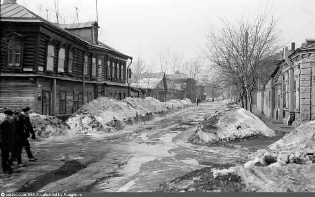 Даже в послевоенные годы застройка в основном была деревянной. Посмотрим, каким был район в 1950-1960 гг.
