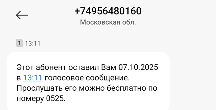 Несколько дней тишины, вчера, в 20:45 вечера, звонок с +7 499 671 71 91, не поднял трубку.