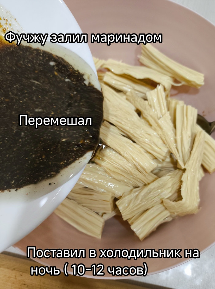 Заказал фучжу в сухом виде на маркетплейсе и решил замариновать по-своему. Вкус получается более насыщенным и ярким, а из 250 гр. сухого вещества на выходе около 500 гр. готового продукта.