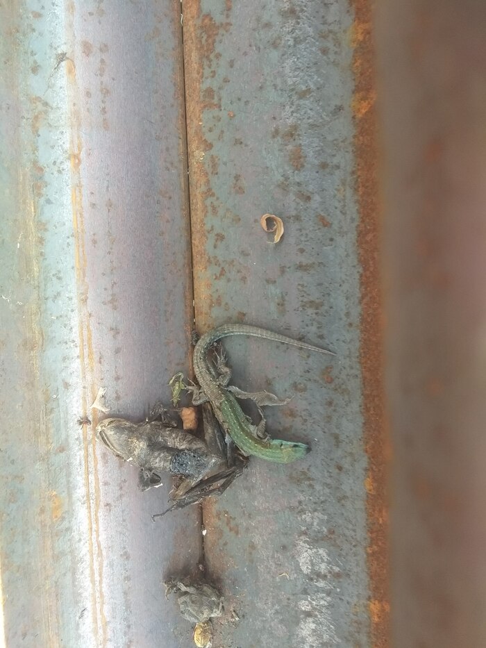 Кузнечик погиб, несмотря на наличие крыльев. Жара сильно разогревает рельсы, руку не приложить. Мозги у несчастных начисто отрубаются в таком пекле...