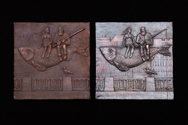 Можно наращивать медь поверх вылепленного рельефа или снимать виксинтовую форму и наращивать в нее, что дает разные фактуры: