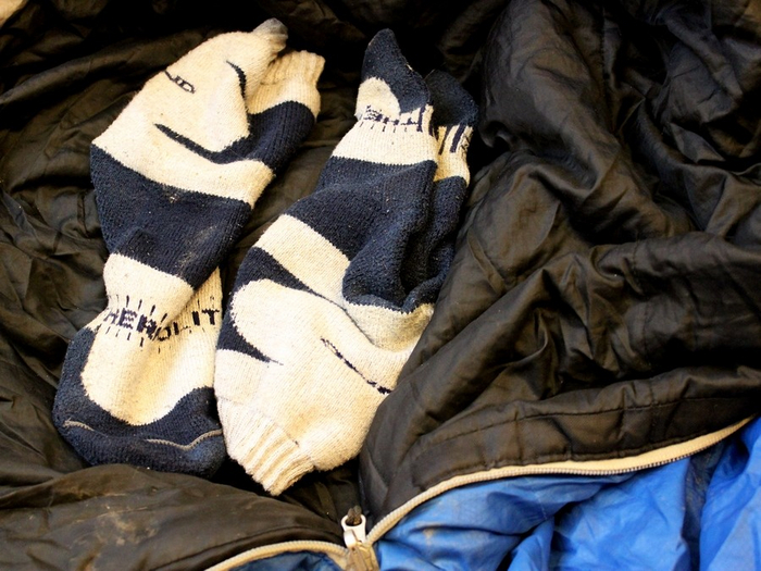 Есть шутка — «самый лучший способ высушить носки, положить их в спальник уставшего и крепко спящего друга».