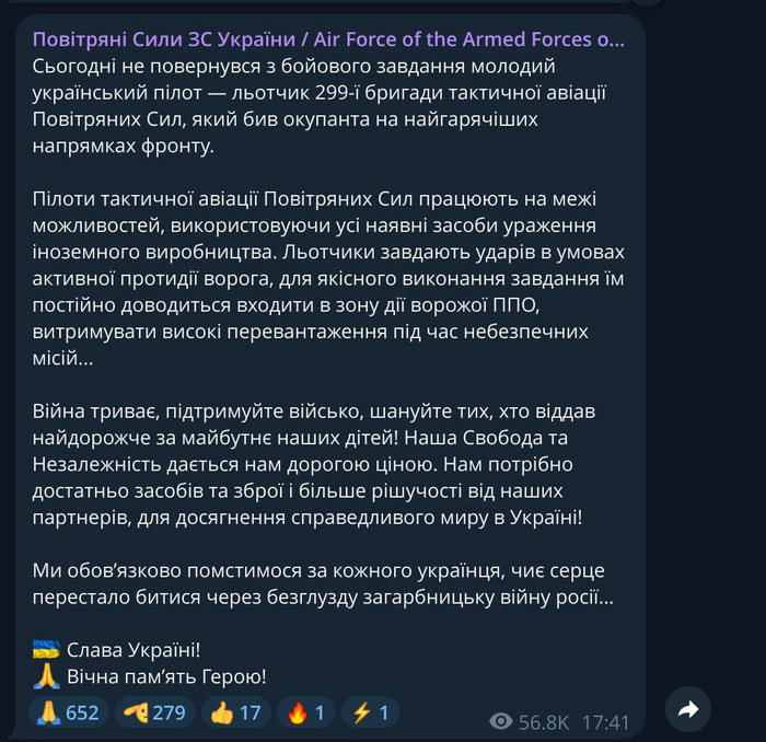 В отличие от самолета, пилот его был совсем молод. ВСУ подтвердили потерю летчика 299-й бригады тактической авиации.