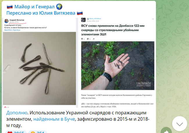 Дело в том, что в телах погибших обнаружены маленькие металлические дротики, так называемые флешетты. Они содержатся в снарядах, при взрыве может разлетаться несколько тысяч таких поражающих элементов. Таким образом, первое несовпадение с украинской пропагандой: люди, чьи трупы демонстрировались киевскими СМИ на улицах Бучи, не были расстреляны, а погибли от обстрелов артиллерией. Конечно, британский журналист со ссылкой на неких неназванных очевидцев уверяет, что подобными снарядами города обстреляла российская армия незадолго до ухода оттуда. «Кто же мог обстреливать Бучу из артиллерии, когда Буча контролировалась российскими войсками? Не иначе сами себя», – иронизирует обозреватель Борис Рожин. Опыт войны на Донбассе говорит о том, что флешетты неоднократно обнаруживались в телах жертв украинских обстрелов. Их применение фиксировалось еще со времен осады Славянска. Так что, похоже, Guardian дарит доказательства тем, кто утверждал, что жители Бучи погибли при обстреле украинской армией отступающих из города российских войск. Зачем же западные СМИ «слили» такую информацию? Ведь британцы могли просто гнуть до конца свою линию, отказываясь предоставлять какие-либо данные экспертизы!