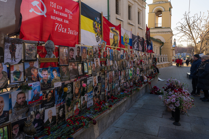Все думал, как оформить эти фотографии — уж очень много ответственности. И сейчас они особенно актуальны. Во времена, когда страна в экзистенциальном конфликте, парни бьются, не жалея себя. Ради нас. Ради наших детей. Чтобы мы могли жить обычной жизнью, спокойно смотреть в будущее. На фото — мемориал на Варварке, посвящённый героям СВО. Грустно, что такие люди уходят. Но за их спинами — сотни тысяч таких же. Пока они есть, даже если весь мир против — всё будет хорошо. Гордимся. Помним. Скорбим.
