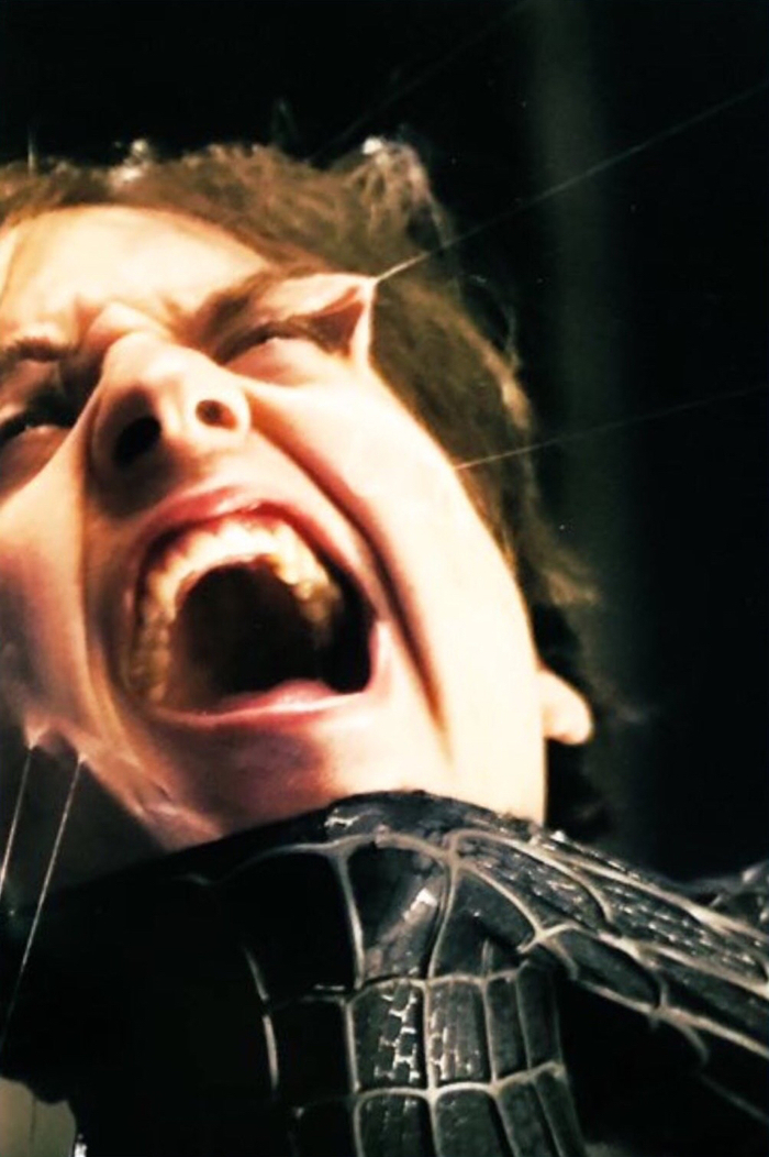 Чтобы создать этот "болезненный" эффект избавления от симбиота, гримёры приклеивали к лицу кусочки накладной кожи и потом к ней прикрепляли леску, которую растягивали в стороны. Затем леска и остальные детали заменялись на тело симбиота в постпродакшене.