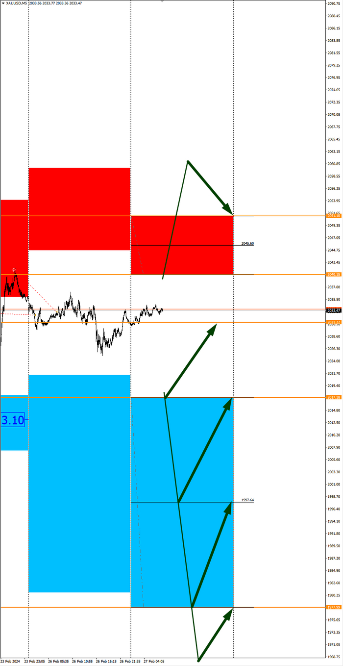 По Золоту сегодня сезон продаж и вероятность 60% к закрытию дня удерживать актив ниже цены открытия 2031,22.