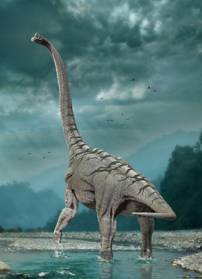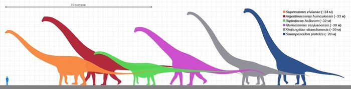 Он мог срывать самые молодые и вкусные листья с растений на высоте 18-ти метров. Настоящий исполин весил 40 тонн, а длина тела от головы до хвоста составляла 27 метров. Чтобы прокормиться, он должен был ежедневно съедать тонну травы и листвы, поэтому жевал всё время на протяжении своей жизни, продолжающейся около ста лет, прерываясь только на сон и размножение. Никаких механизмов защиты от врагов природа завропосейдону не предоставила, компенсировав всё ростом.