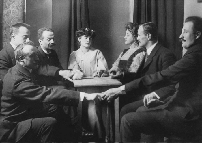 Спиритический сеанс с участием французского астронома Камиля Фламмариона. Париж, вторая половина 19-го века Автор фото неизвестен В середине 19-го века в Европу проник последний писк американской моды – общение с духами. Во Франции, Германии, Англии проводились спиритические сеансы, на которых медиумы – посредники между мирами – связывались с душами умерших и задавали им вопросы на интересующие темы.