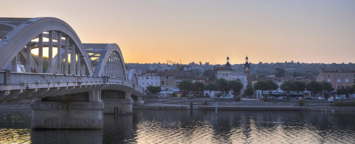 Слева - одна из главных достопримечательностей города. Это мост, построенный в 1934 году, взорванный немцами в 1944-м и потом восстановленный. Еще раньше в городе был мост покруче. Он внешне был похож на этот, но зато снимался в фильме братьев Люмьер. А это вообще-то был "первый документальный фильм в истории", как говорит Википедия. 1895 год, 39 секунд. Назывался фильм "Прибытие делегатов на фотоконгресс в Лионе", можете посмотреть вот здесь.