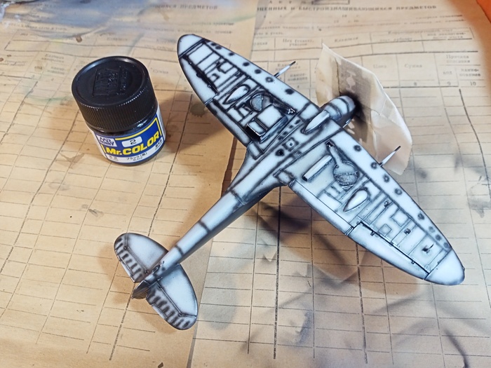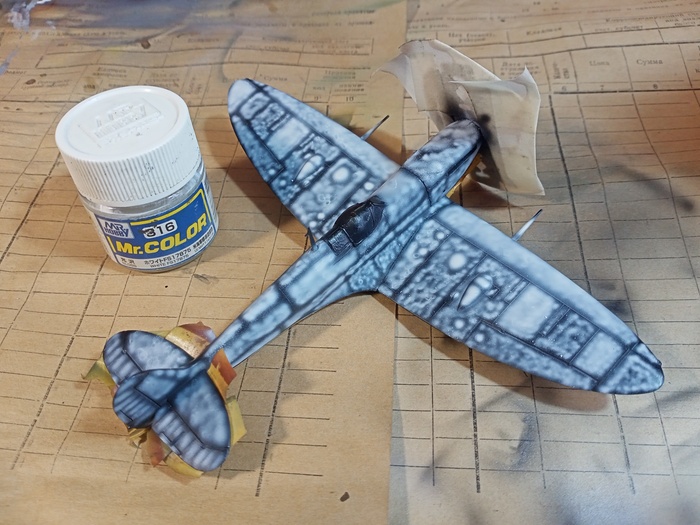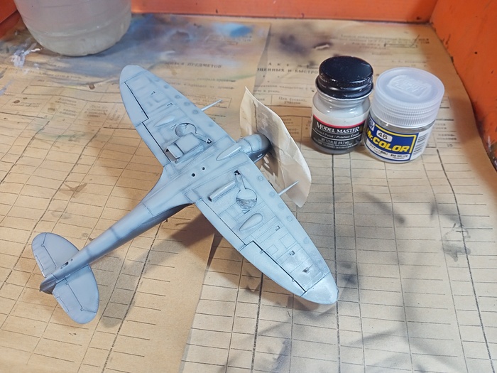 Цвет на брюшко - Testors Italian Light Grey. Это, конечно, не аутентичный Medium Sea Grey, но я вас умоляю, разница не так велика. А поскольку я собираю, как видят мои подписчики, весьма разноплановою технику всех времён и народов, иметь аутентичные оттенки на все модели крайне накладно да и просто нереально!