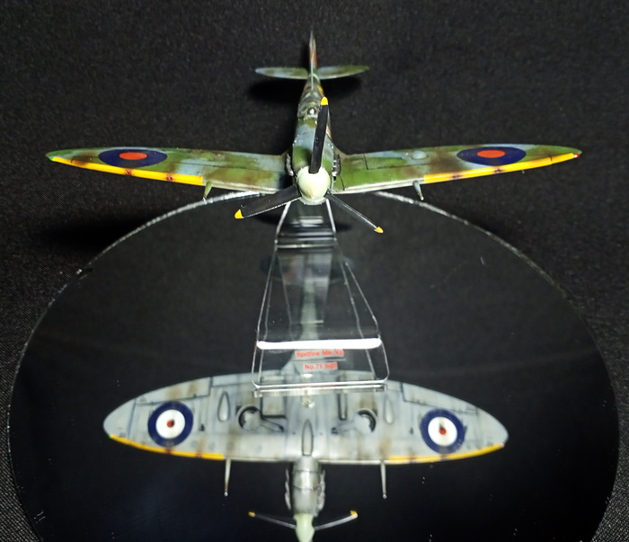 Представлена модель Supermarine Spitfire Mk.Vb с пушечно-пулемётным вооружением из 71-й эскадры (71 Eagle Squadron) Королевских ВВС Великобритании, пилот — Лео Номис, Саффолк, Великобритания, апрель 1942 года. Модель фирмы Airfix, масштаб 1/72.