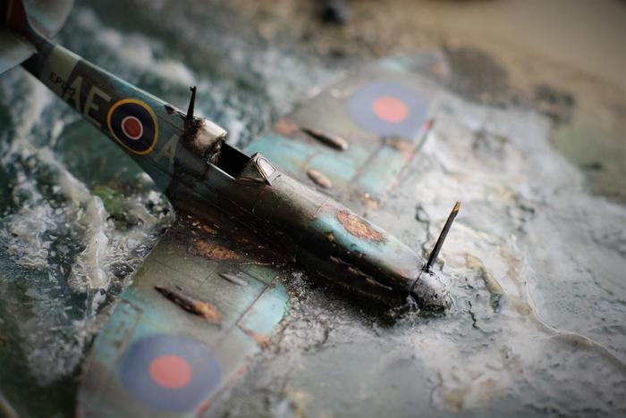 Использовал модель Спитфайр 1/72 от Revell. Краски тамия и Звезда. Эпоксидная смола маде ин Россия. Песок и галька тоже).
