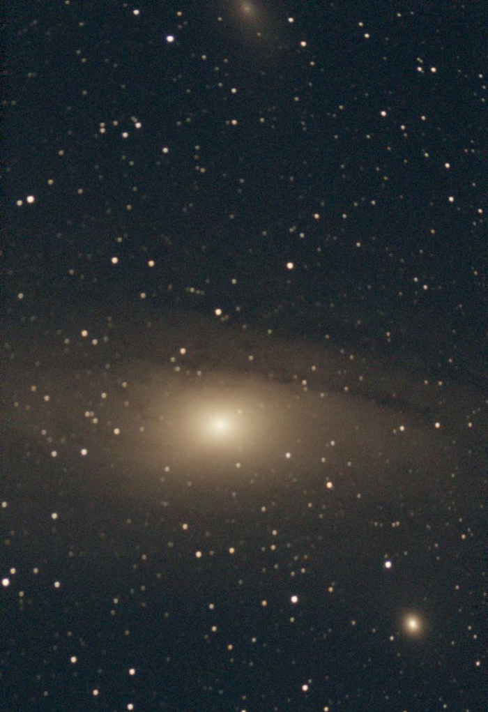 Для сравнения, вот одиночный кадр. Глазом видно чууууууть лучше, как круглое такое пятно центра галактики. О рукавах и не мечтайте, если у вас не телескоп-бандура в полметра, канеш))