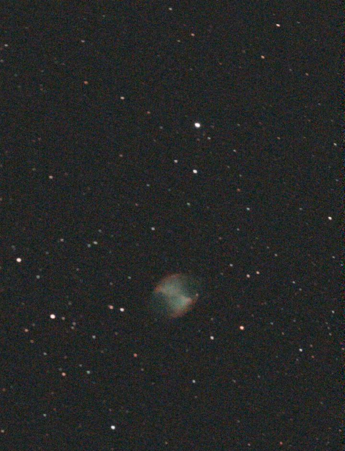 Сигнал копить больше не стал, хоть тогда бы открылись ещё детали -- захотелось увидеть что-то другое. Я навёлся на Гантель. Туманность в нашей галактике. Объект куда ближе -- всего то три тыщи световых лет (всего-то, пфффф). Примерно во времена пирамид свет покинул эту туманность. Но по мне так это огрызок яблока, а не гантель).