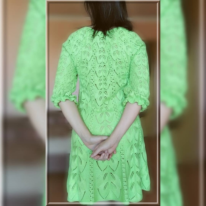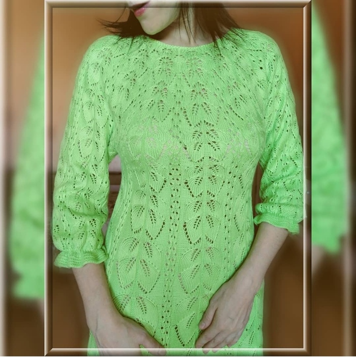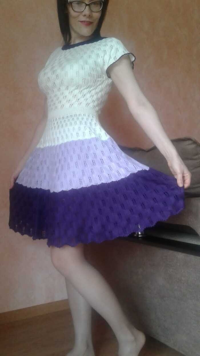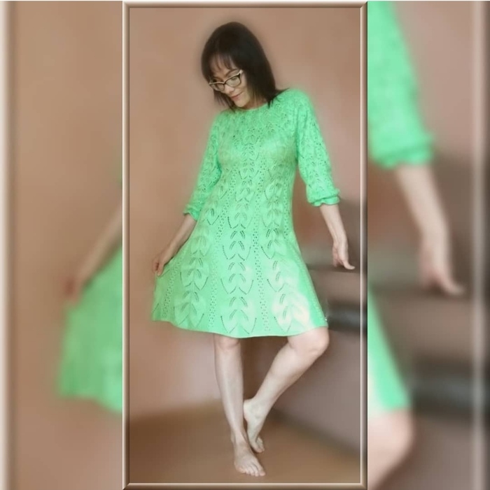 Показываю вам свое платье, одно из нескольких, мною связанных, где схема для узора проста как песня, где два притопа и три прихлопа.