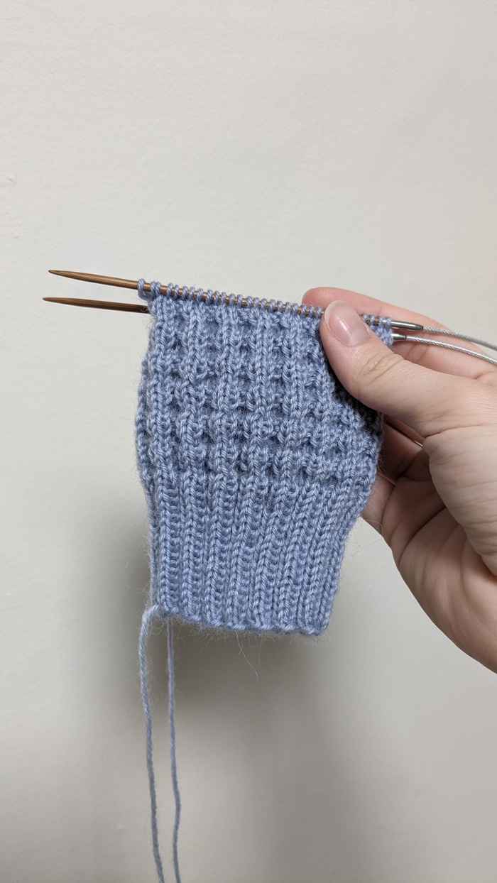 Ну и, конечно, уже во всю использую их. На этих спицах у меня сейчас носочки с узором, напоминающим то ли вафельный, то ли жемчужный. Но об этом позже.