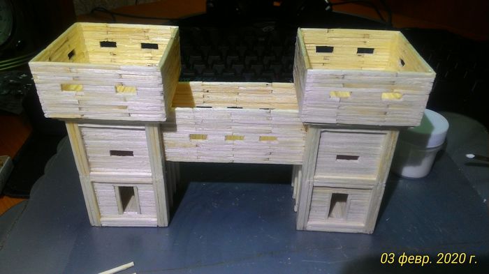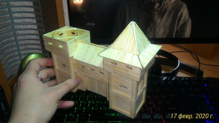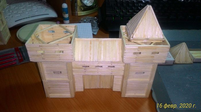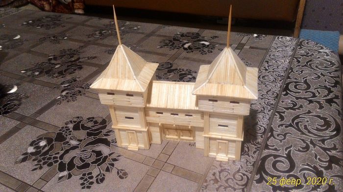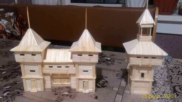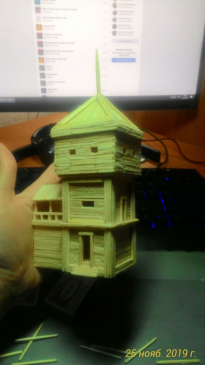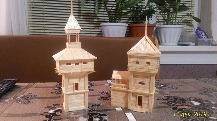 От склейки коробков в более старшем возрасте перешли к строительству домиков и башен из спичек. Поначалу, собирали просто кубики, потом из нескольких кубиков делали башни, потом стены- получалась целая крепость. Для такой мини-стройки необходимо было иметь терпение и быть очень аккуратным, не сразу все получалось, первые кубики из спичек разваливались. В нашем классе мой друг Олег выстроил из спичек целый дворец с крепостной стеной, все свои строения покрыл лаком, и это сооружение имело очень достойный вид и на школьной выставке предметов детского творчества заняло призовое место. Однако, дети есть дети, не обошлось без хулиганства. Так вот, наш одноклассник- спортсмен, который сам ничего не делал и не собирал, зато был очень физически сильным и периодически демонстрировал свою силу на других, взял и поджег этот дворец ради шутки, чтобы, как он прокомментировал, поприкалываться. Олег и мы, его друзья, очень расстроились и решили объединить всех парней в классе, чтобы всем вместе наказать этого товарища. Куда там, он устроил нам такую взбучку, что сразу отпало желание, как говорится – сила есть, ума не надо. Однако, интерес к спичечным конструкциям после произошедшего только усилился, и даже одноклассницы стали пробовать свои силы в сборке домиков и башен из спичек.