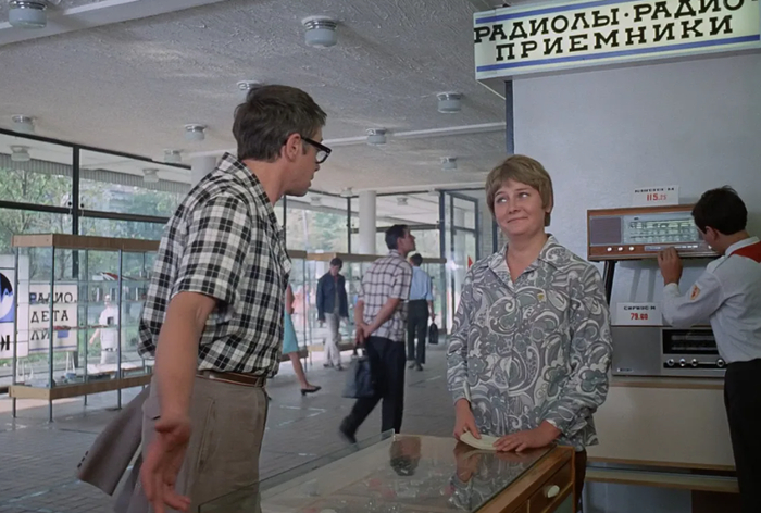 По сценарию Шурик обходит три магазина в поисках транзисторов для машины времени. На деле все съёмки прошли в одном здании на той же Новокузнецкой улице. Именно там герой находит спекулянта и покупает нужные запчасти.