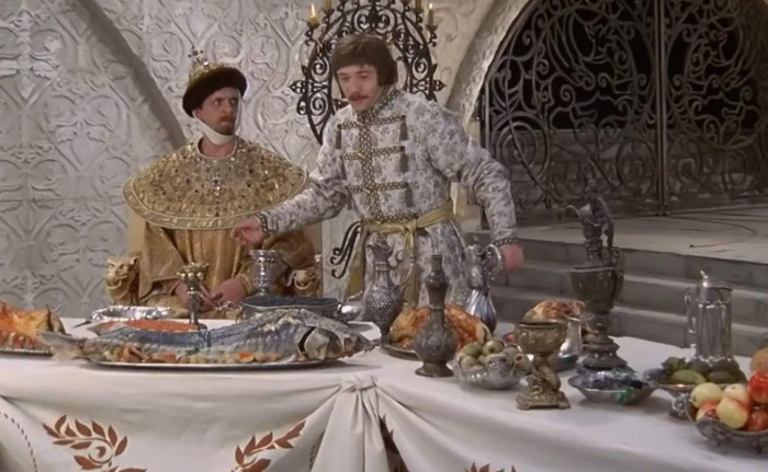 Когда снимали сцену пира (внутри Ростовского Кремля), Гайдай категорически отказался от муляжей. Всё должно было быть по-настоящему. Продукты закупили, актёры ели в кадре, как в жизни. Ради этого Гайдаю даже пришлось выложить 200 рублей из своего кармана.