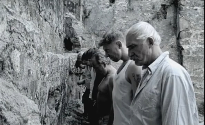 Ну а потом Кречетов допрашивает караульного Охрятина. Караульный утверждает что он никуда не уходил, никто не приходил и он никого не видел. Проходил мимо только врач Арсенин, который искал Гоцмана . Так же Охрятин утверждает, что Родя немного постучал а потом успокоился, хотя по идее когда Родю душили, он должен был колотить ногами по дверям железного шкафа как сумасшедший, и там бы стоял сильный грохот. Ну а Гоцман осматривает шкаф и ищет хоть какие то зацепки.