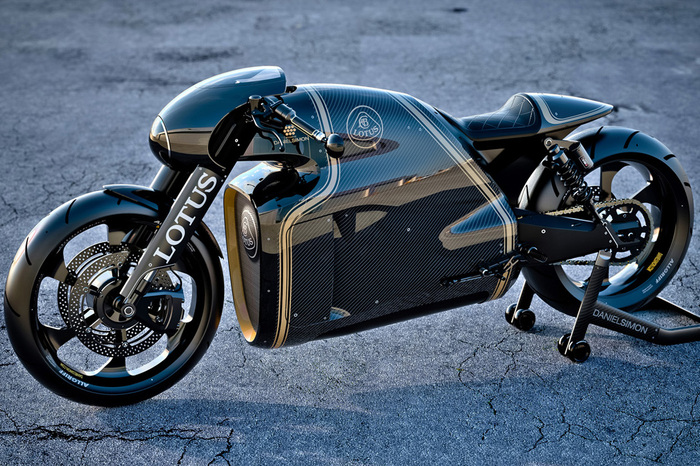 Первый мотоцикл, вышедший под автомобильной маркой Lotus, волнует воображение футуристическими обводами. Обтекаемые формы мотоцикла созданы дизайнером Даниэлем Симоном, который известен созданием визуальной составляющей вселенной Трон. Внутри кузова — двухсотсильный V2 и шестиступенчатая трансмиссия, которые разгоняют мотоцикл до 300 километров в час.