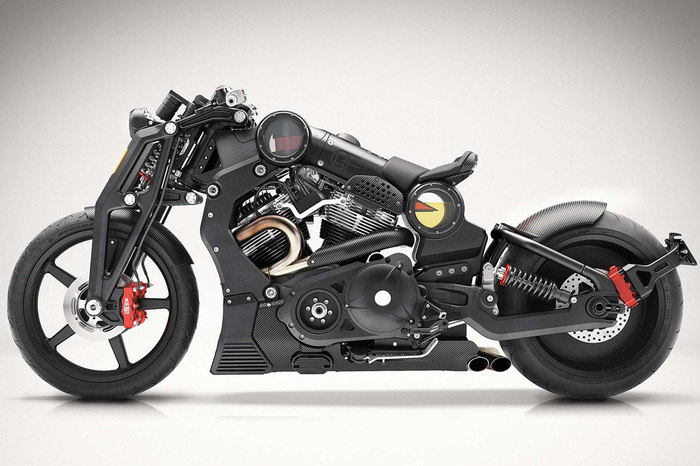 Источником вдохновения для создателей этого мотоцикла послужило творчество художника Гигера — создателя уникальных существ, прибывших будто их враждебной вселенной. Мотоцикл, построенный ограниченным тиражом, сочетает в себе фантастичность и эстетику ретро, активно используя в облике хром во всех его проявлениях.