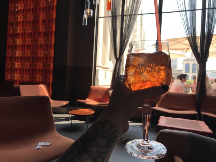 Заведение Апероль и одноименный напиток апероль шприц. P.S. рука не моя :D