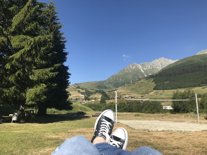 Рядом с нашим отелем находился так же кемпинг, в котором мы обнаружили 4-5 домов на колёсах. Я раньше никогда с кемпингами не сталкивался, и для меня было немного непривычно видеть подведённые воду и электричество. Стану старым и богатым - обзаведусь железякой на колёсах и буду кататься по Альпам туда сюда.