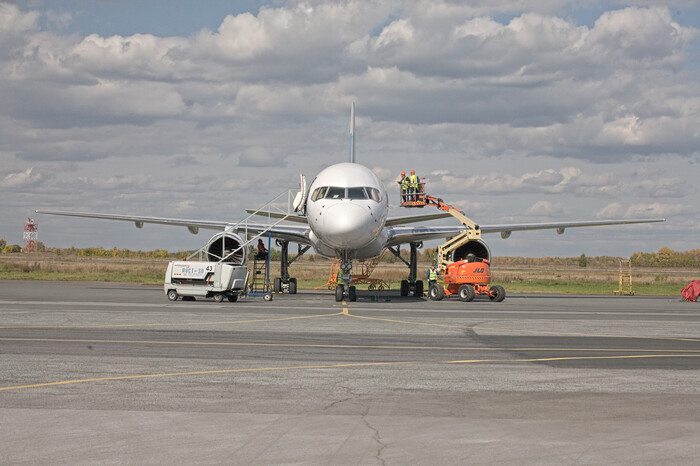 Этот самолет летал еще в авиакомпании «Трансаэро», потом находился на хранении в аэропорту Домодедово, немного полетал в Red Wings, а затем простоял несколько лет в Казани. Не так давно самолет восстановили, теперь он снова в небе, снова в Red Wings и снова в Домодедово.