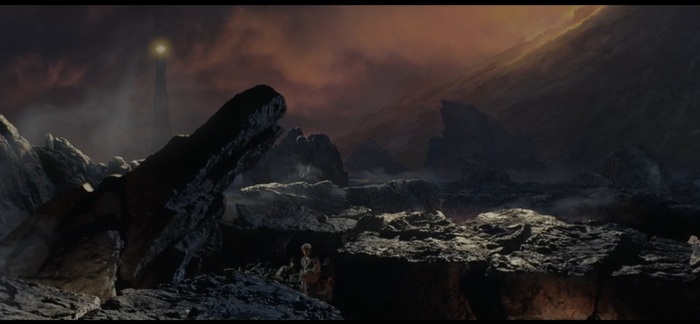 Здесь их и засекает Око.Башня засекла хоббитов в 80км от себя. Объявлена тревога - армии Мордора на сборе. Согласно сюжету «Властелина колец», Роковая Гора находилась примерно в 30 милях (около 48 км) к западу от Барад-дура, оплота Саурона в Мордоре.