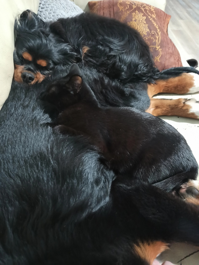 Мой цверг - просто очаровашка, когда спит. Устроится поудобнее среди подушек и пледов, экспроприировав полдивана, или в порыве нежности прикорнет под боком у хозяйки. Правда, фотографии этой черной кляксы не всегда получаются.