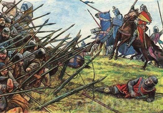 В битве при Баннокберне, в 1314 г., король шотландцев Роберт Брюс и шилтроны шотландских пикинеров разгромили английских рыцарей Эдуарда №2 в ходе войн за независимость Шотландии.