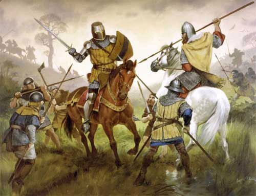 Ясное дело, остальные английские рыцари решили развить достижение покойного Хемфри и пошли в атаку. Сделали это по-феодальному. Раздроблено. Все то же самое можно будет увидеть потом, при Кресси.