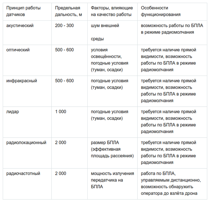 Наиболее полную защиту от маловысотных угроз, способны обеспечить комбинированные системы, работающие на разных физических принципах, в различных частотных диапазонах. При этом среди остальных, за счёт большей дальности функционирования, выделяются системы радиолокационного и радиочастотного обнаружения БПЛА.