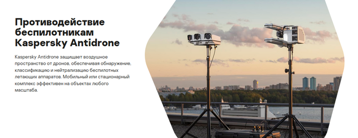 Несмотря на то, что AO «Kaspersky Lab» не является производителем технических средств для обнаружения и противодействия БПЛА, эту компанию можно причислить к разработчикам систем защиты от дронов. Они используют оборудование известных брендов (отечественных и иностранных), занимаясь написанием программного обеспечения для обнаружения и распознавания беспилотников, а также аналитики по случаям вторжения на охраняемый объект. В качестве датчиков используются все возможные варианты, начиная от звука и заканчивая лидарами и радиолокацией. На официальном сайте содержится подробная информация по характеристикам модулей, иллюстрируется рабочий интерфейс. Цены на сайте не представлены, но по сообщениям в интернет-изданиях минимальная стоимость изделия составляет 100 000 $. Руководитель этого проекта активно выступает в СМИ и даёт интервью, продвигая решение от AO «Kaspersky Lab».
