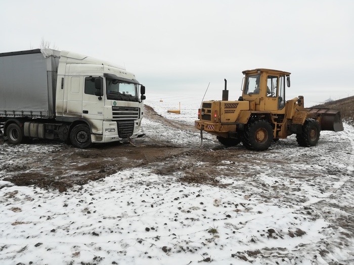 Спрашиваю: - как же тебя сюда занесло? Он растерянный: - да, вот, навигатор завел по объездной дороге, бесплатной, хотел срезать. Сначала по деревне ехал, потом, как свернул и поехал вдоль поля, уже понимал, что плохая идея, но повернуть небыло места и задом не поедешь, вот и решил ехать дальше, пока не найду возможность развернуться. И вот доехал, в низину - впереди крутой подъем, градусов 45 к жд путям, сзади горка, слева поле, справа низина полуболотистая. На дороге лёд, ещё и дождь капает. Пытался развернуться тут, но как корова на льду только раскорячился.