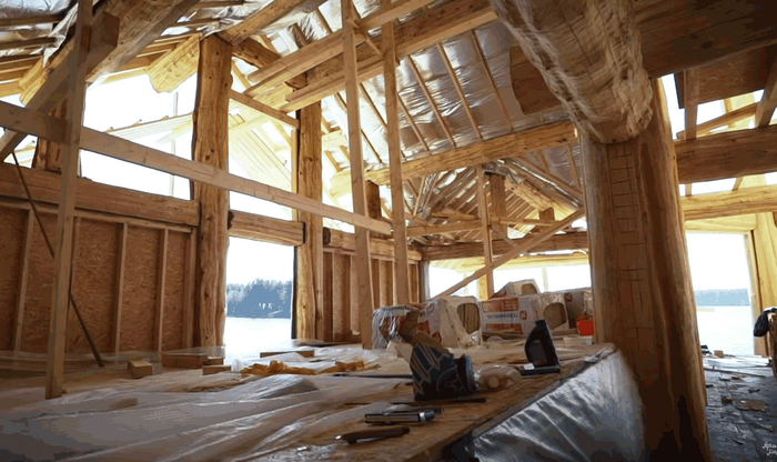 UPD. Камараден, у меня появилась минутка и я прокрутил на скорости основной ролик этих ребят. Как оказалось, они строили дом по технологии Post and Beam и сгорел он, как я понял, ещё до сдачи владельцам. :( Судя по текущему видео - выводы про экобионатуральные материалы были сделаны.