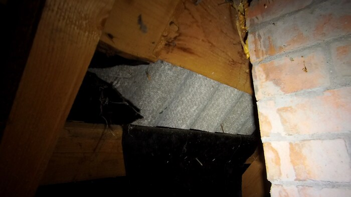 А вот и обещанный бонус. Из интересных казусов с минватой, помимо часто встречающегося монтажа без гидроветрозащиты и пароизоляции (от которого у жильцов начинается кашель, аллергия и потенциально может возникнуть нехорошее заболевание лёгких - силикоз), мне вспомнился один случай со щеледомом. Осматривая его перед покупкой, на чердаке обнаружил такую конопатку.