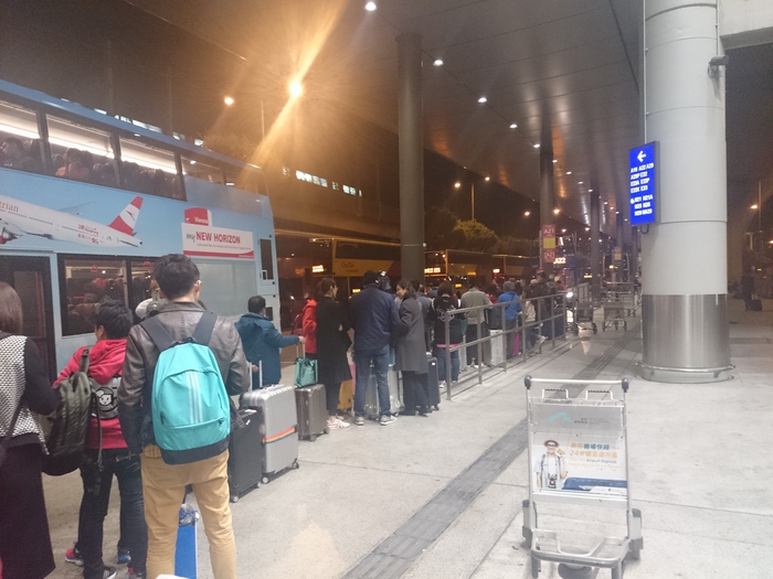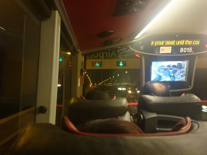 Прилетел в Гонконг я довольно поздно. Долго ждал багаж. Мой хост заранее дал мне пару советов: например, купить карточку под названием Octopus, которую можно использовать для оплаты всего и везде. Из терминала я вышел на автобусную станцию. Отсюда можно уехать в любую часть Гонконга. Все автобусы, в номере которых присутствует буква А – идут в\из аэропорт(а). Автобусы двухэтажные, в тех, что едут в аэропорт, имеются багажные полки, а на втором этаже на мониторе транслируется изображение первого этажа.