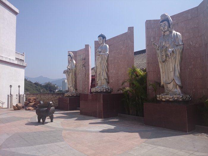 Корейцы вернулись из Макао, солидно просадив деньги в казино) Сегодня я по рекомендациями Келвина решил отправиться на гору Lion Rock неподалеку, но перед этим решил зайти в храм рядом с Ten Thousand Buddhas Monastery. Ну и попутно я заскочил в ТЦ в официальный магазин японских ножей KAI и прикупил себе еще один нож…Оказалось, здесь они дешевле, чем в Бангкоке.