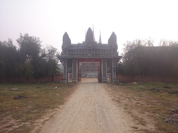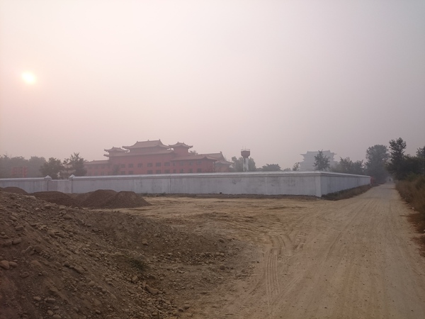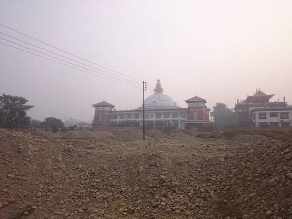 На подъезде к Лумбини все вокруг было в пыли и дыме с полей. Вдоль дороги куча лачуг, прям по ощущениям какая-то дыра. Приехали мы на Lumbini Bazaar, располагавшийся в паре километров от Корейского монастыря, в котором я собирался остановиться. Познакомился с двумя кореянками, которые направлялись туда же, но не знали дороги, пошли вместе.
