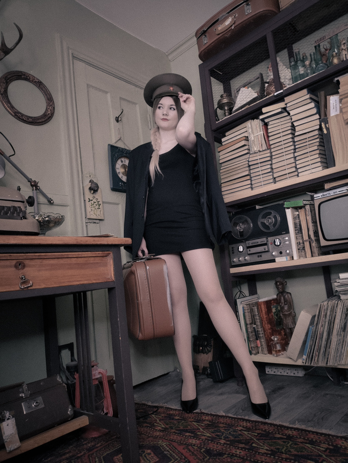 Решила я как-то провести съемку в советском стиле, нашла студию, офицерскую фуражку. Взяла подругу и поехали мы меня фотографировать. И вот он результат, мне очень нравится.