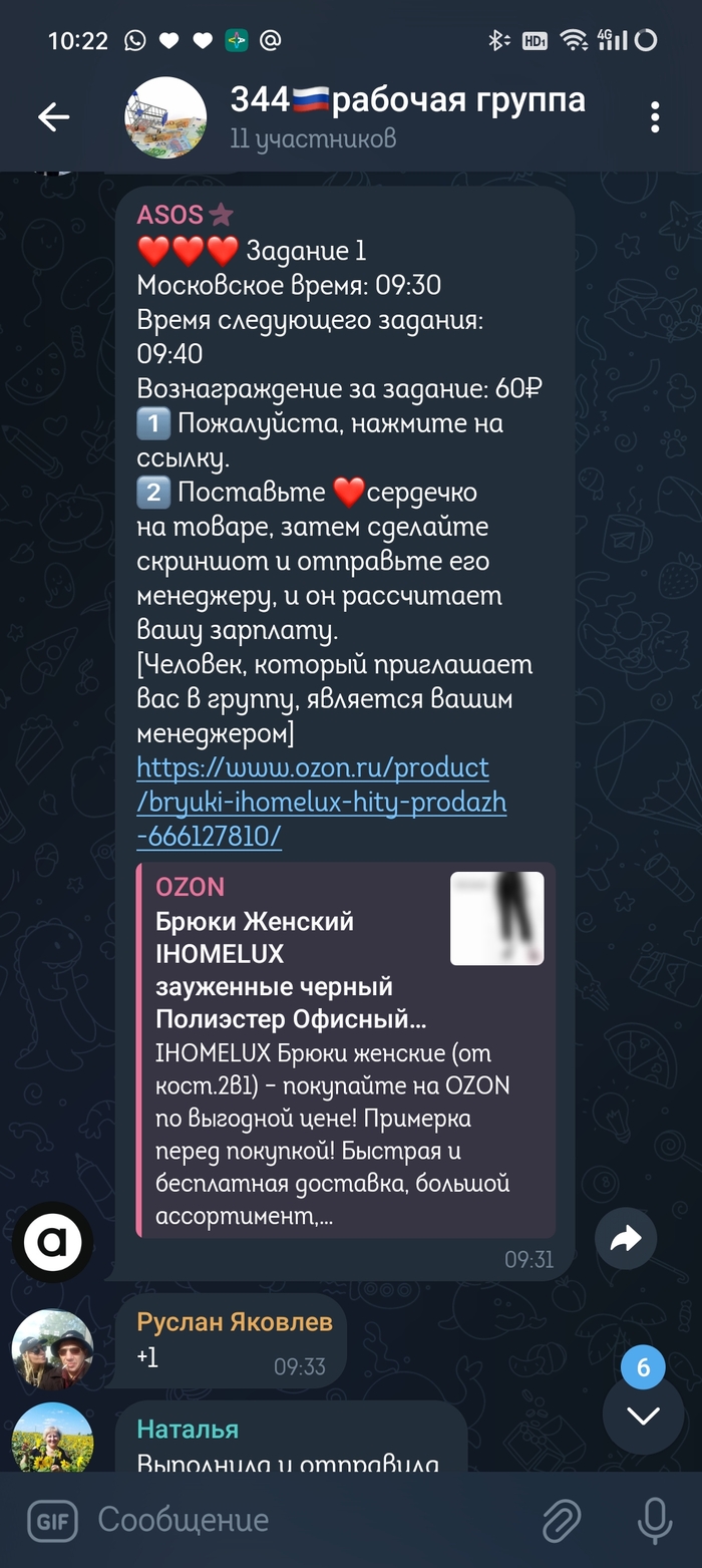 Далее я перешел в Рабочую группу ) там начали высылать задания где нужно ставить лайки на товары в озоне