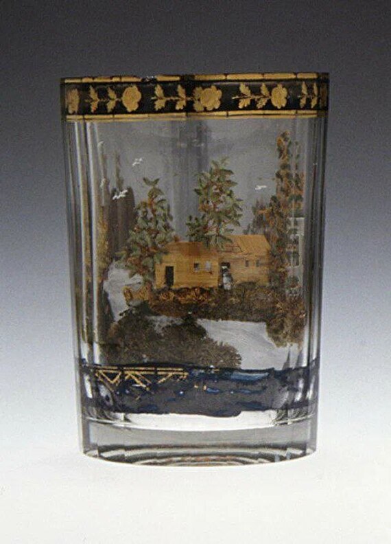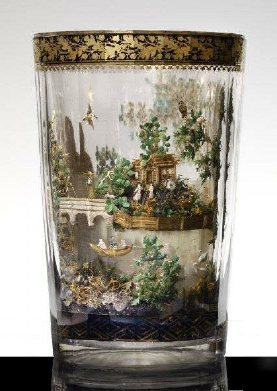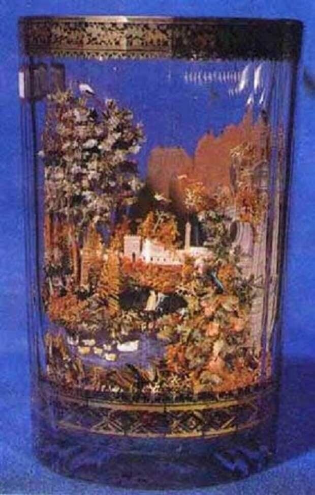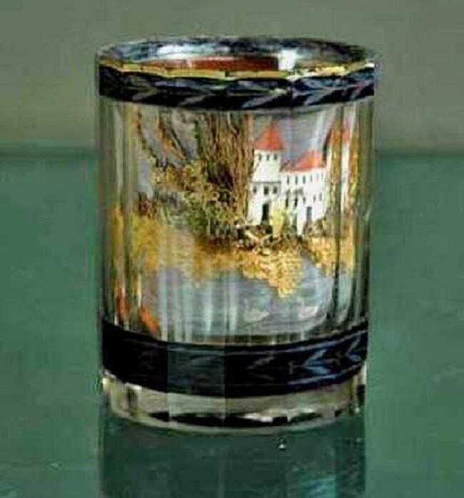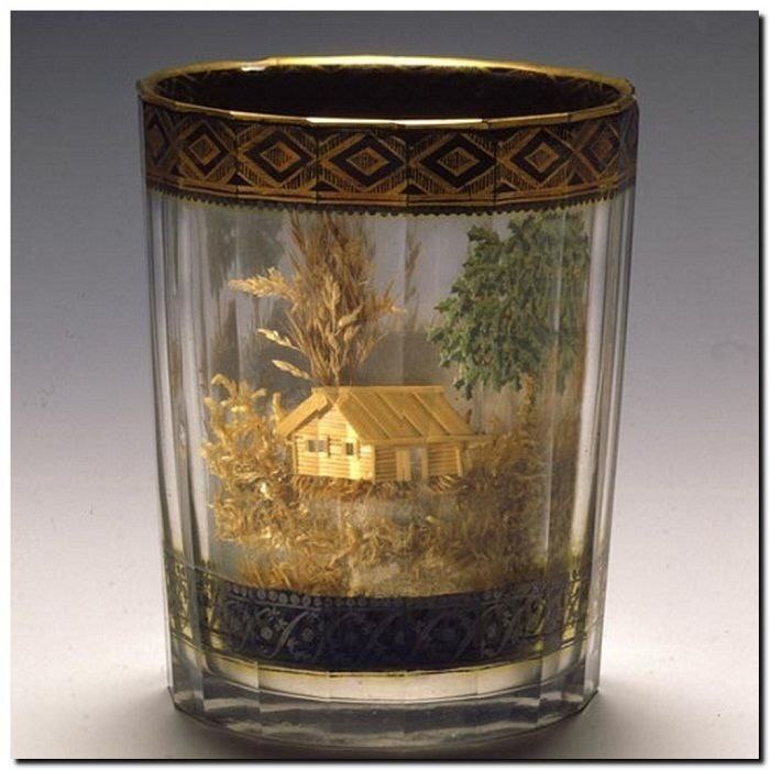 Более 200 лет назад стекольных дел мастер крепостной Александр Вершинин создавал уникальные двухслойные стаканы, между стенками которых располагались целые картины, точнее, маленькие макеты пейзажей, сделанные из камешков, мха, соломы, цветных ниточек и бумаги.